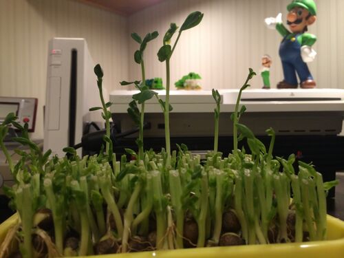 少しづつだけど、伸びている芽の数も増えてきているように感じる。 18時頃からたった6時間でこんなに傾くのはおかしい。肉眼で見ていても確認できる気がする(6時間豆苗を見続けるのは無理だと思う)。ところでこの写真らは、iPhone 5sで撮影して、ちょっと…